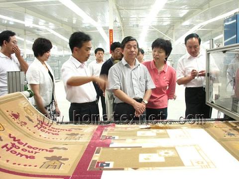 下午3點(diǎn),楊會(huì)長在孫市長的陪同下先后參觀了公司的化纖車間、多功能展廳以及地毯車間,在化纖車間,公司董事長韓洪亮向楊會(huì)長詳細(xì)介紹了化纖車間的情況。韓總說,化纖車間是公司為延長產(chǎn)業(yè)鏈、保證原材料長絲而新上的車間,化纖車間無論是設(shè)備科技還是年產(chǎn)量在國內(nèi)都位居前列,目前已經(jīng)試車成功,即將投入量產(chǎn)。聽到這些,楊會(huì)長高興的說,機(jī)織地毯在我國方興未艾、正處于一個(gè)快速發(fā)展的黃金階段,誰抓住機(jī)遇、誰就能做大做強(qiáng),東方地毯能夠依靠科技創(chuàng)新、走集團(tuán)化的發(fā)展戰(zhàn)略,為中國地毯行業(yè)模式的發(fā)展創(chuàng)造了范例。